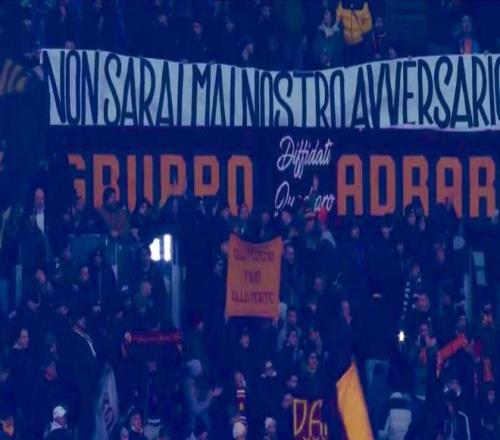 比赛中与赛后,情绪不断升温。罗马球迷看台打出横幅:“这里永远是你的家,欢迎回家,DDR。”另一条横幅则写道:“你永远不会成为我们的敌人。”