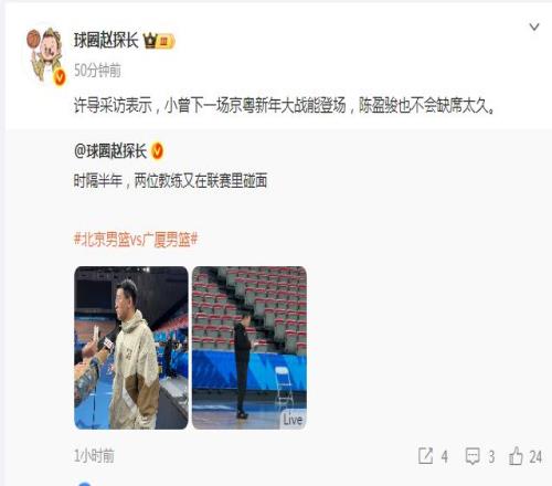 北京时间12月30日,北京将坐镇主场迎战卫冕冠军广厦,北京主帅许利民透露曾凡博无缘登场,他的回归首秀将是2026年1月1日主场对阵广东的焦点京粤大战。至于陈盈骏已经接受鼻骨骨折手术,但不会缺席太久比赛。