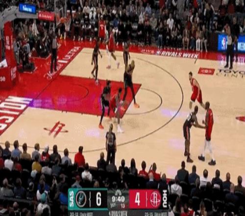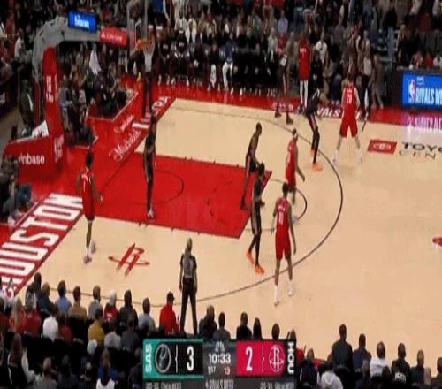 上半场10投6中,3分10投6中,一个人就射下了18分,他一个人的3分球比火箭全队半场的3分球都多……